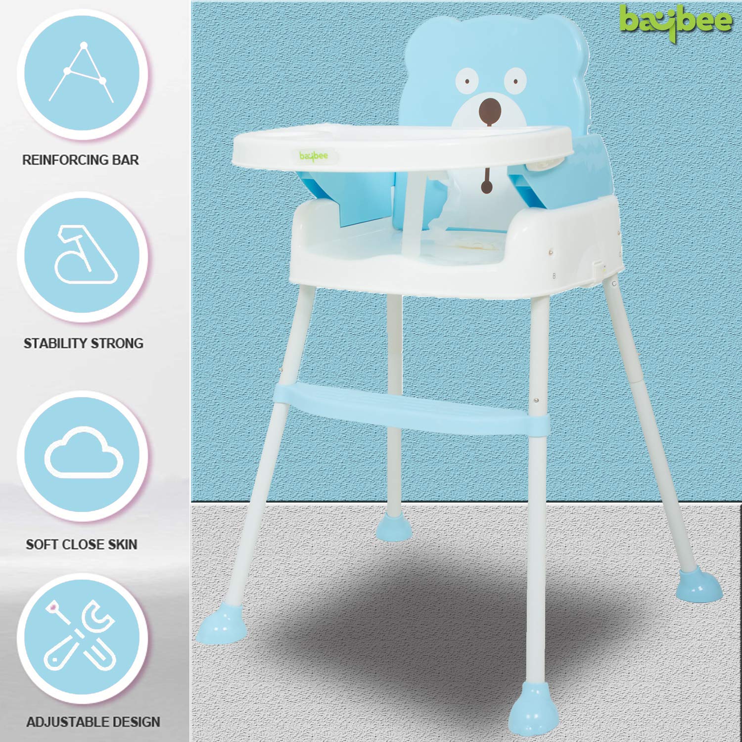 - Its non slippery and anti-tipping design allows high chair to remain stable in any condition.